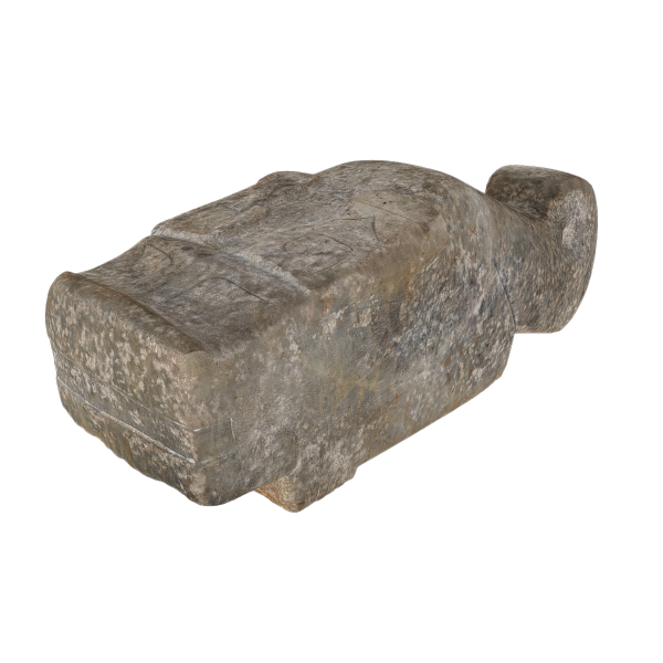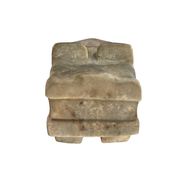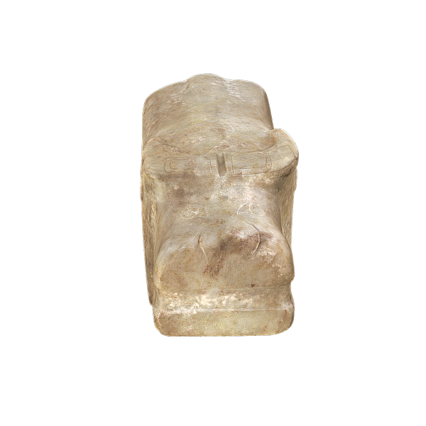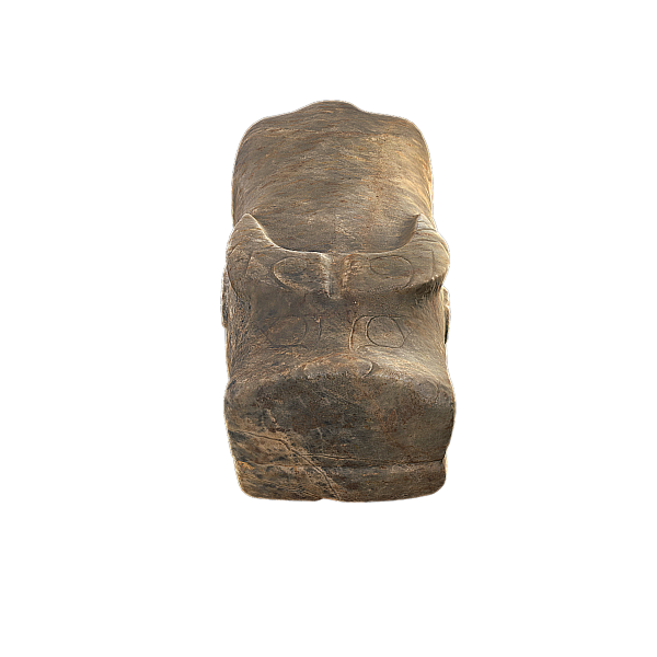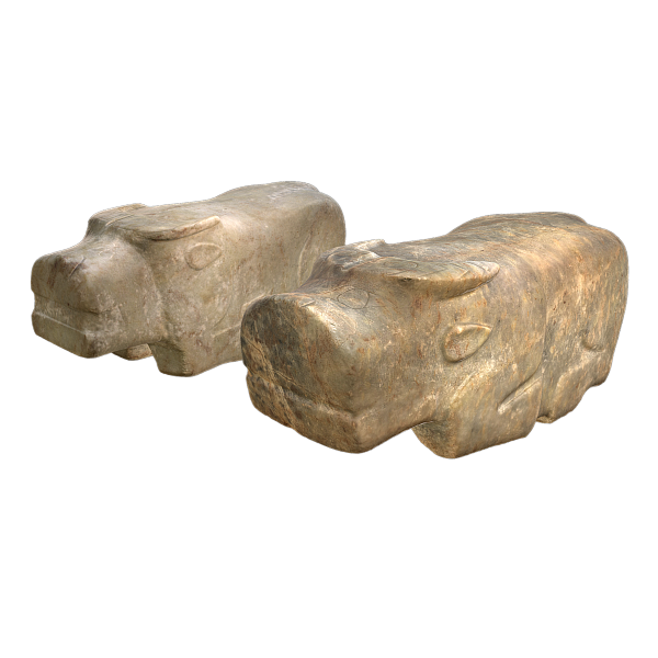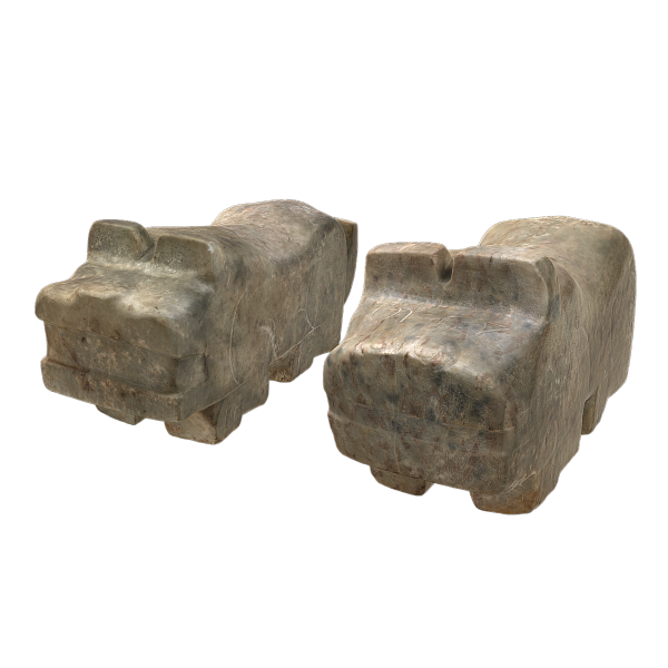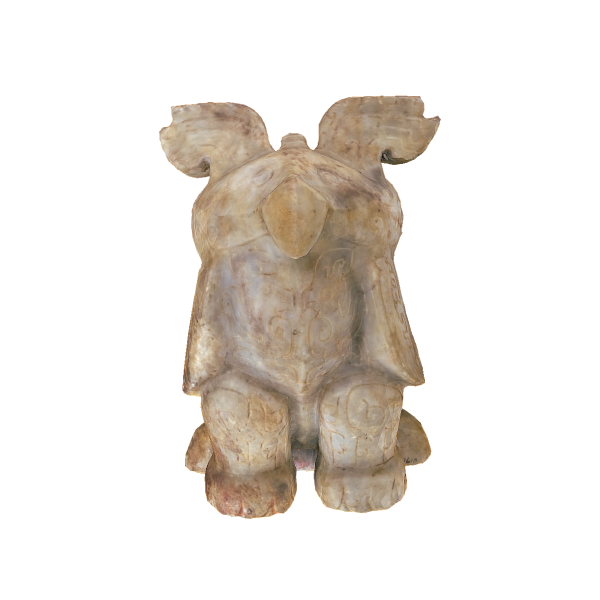 Sculpture of a kneeling anthropomorphic figure with tiger head