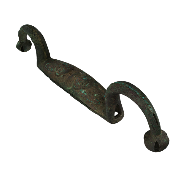 Bronze Yoke Terminal Ornament with Turquoise Inlays
