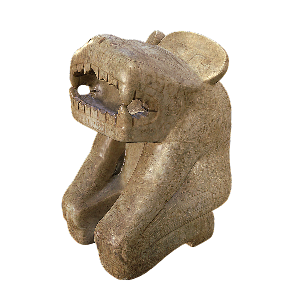 石製虎首人身正座像