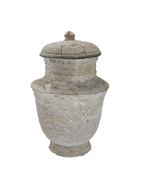 白陶雲雷紋蓋付罐